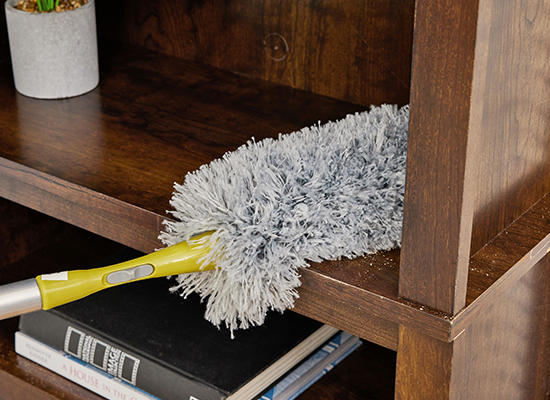 Removal of dust from surfaces, furniture, shelves, and décor to improve air quality and cleanliness.