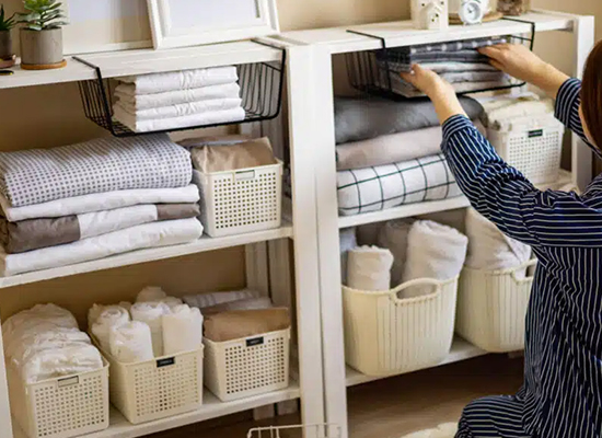 Decluttering and arranging spaces such as closets, shelves, and rooms to create order and efficiency