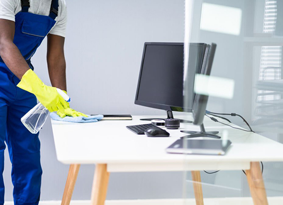 Professional cleaning of workspaces, including desks, restrooms, and common areas, to maintain a productive environment